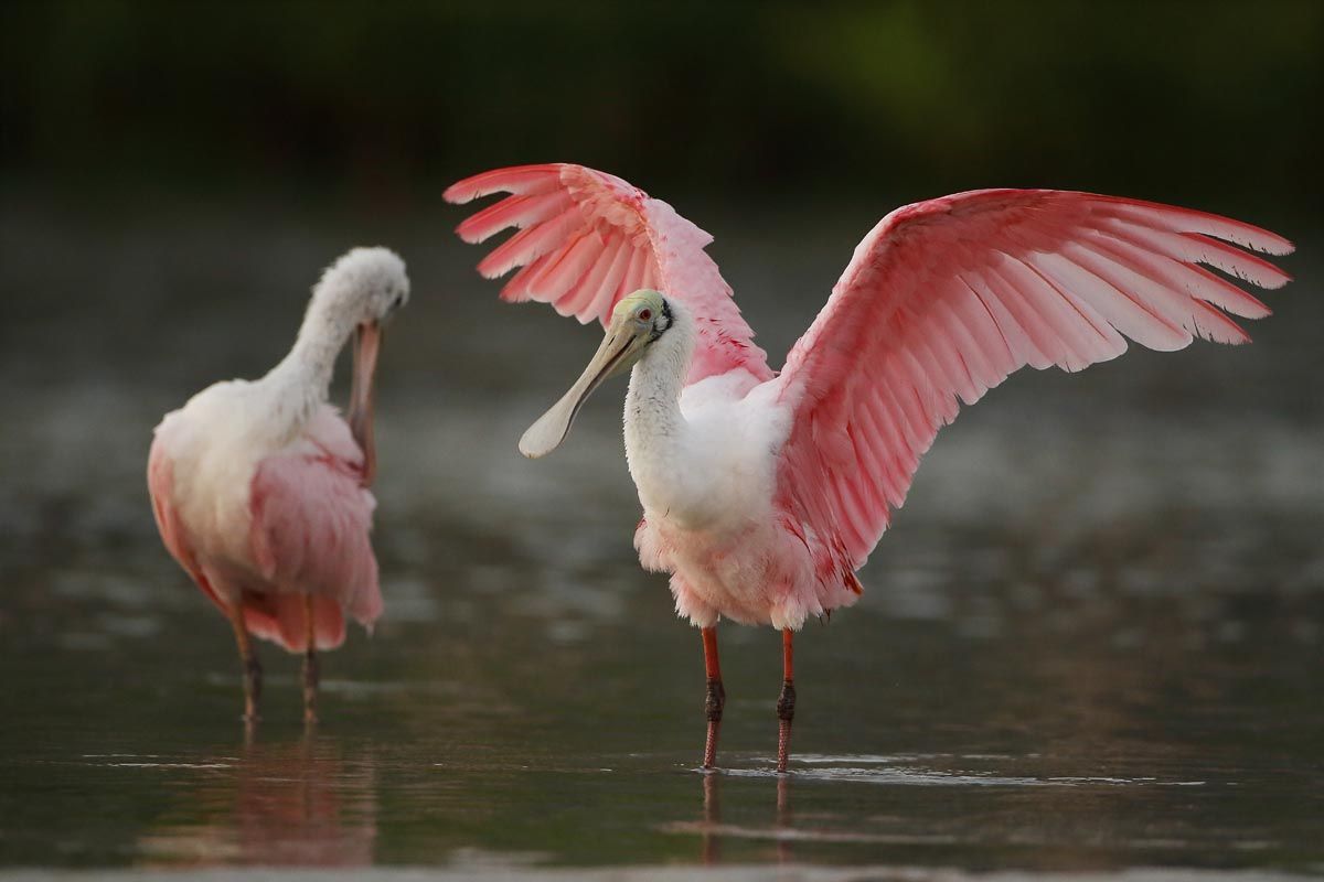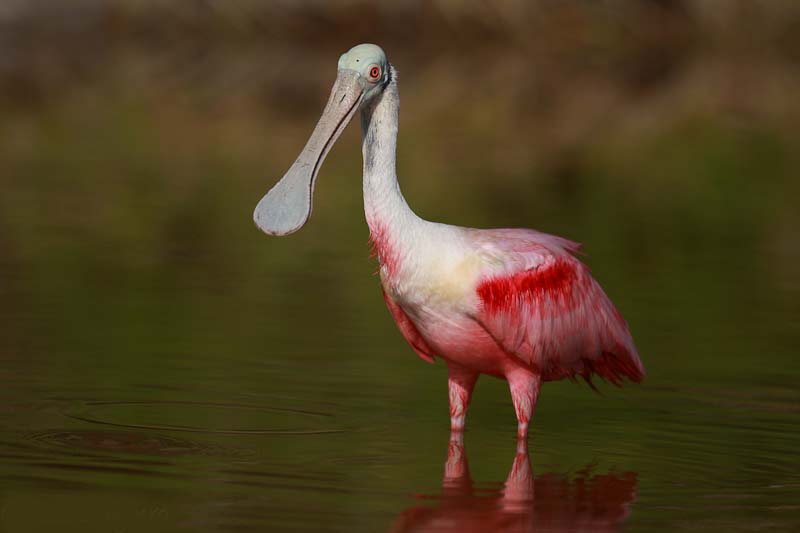 Espátula rosada: si la ves te será algo conocida, de seguro pensaste en las garzas ¡Y si! son muy parecidas porque son sus parientes. Son una especie de aves muy hermosas y particulares ya que su pico tiene la forma de una cuchara (aplanado). Su caracteristicas son las siguientes: